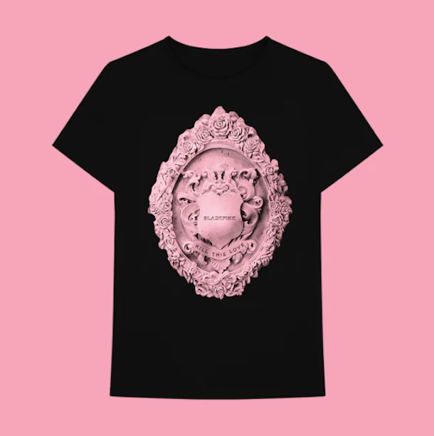 The second item that BLACKPINK has for sale on their site is very similar to the hoodie, except it’s a black t-shirt with BLACKPINK’s Kill This Love artwork on the front. The artwork is pretty intricate and all the details look amazing. The shirt is selling for $35.00. And like the hoodie, it comes with a digital version of the album. So, again, you’re getting two things for one price. Here’s what the t-shirt looks like: